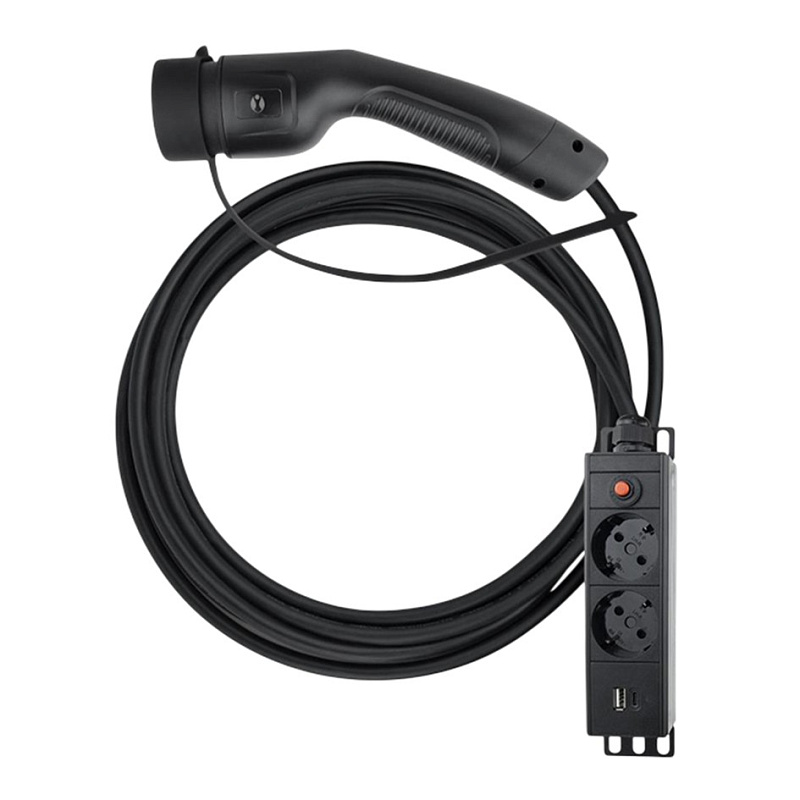 EXLANTIX V2L MBO-C16-01 - портативный адаптер Vehicle-to-Load для электромобилей и автомобилей с гибридным приводом, с разъемом Type 2, который позволяет использовать автомобиль как мобильный источник питания для внешних устройств. Поддерживает напряжение 110–264 В, ток до 16 А и мощность до 4 кВт. Оснащен выходами 2×EU, Type-C и USB, подходит для аварийного электропитания, кемпинга, поездок и бытового использования.